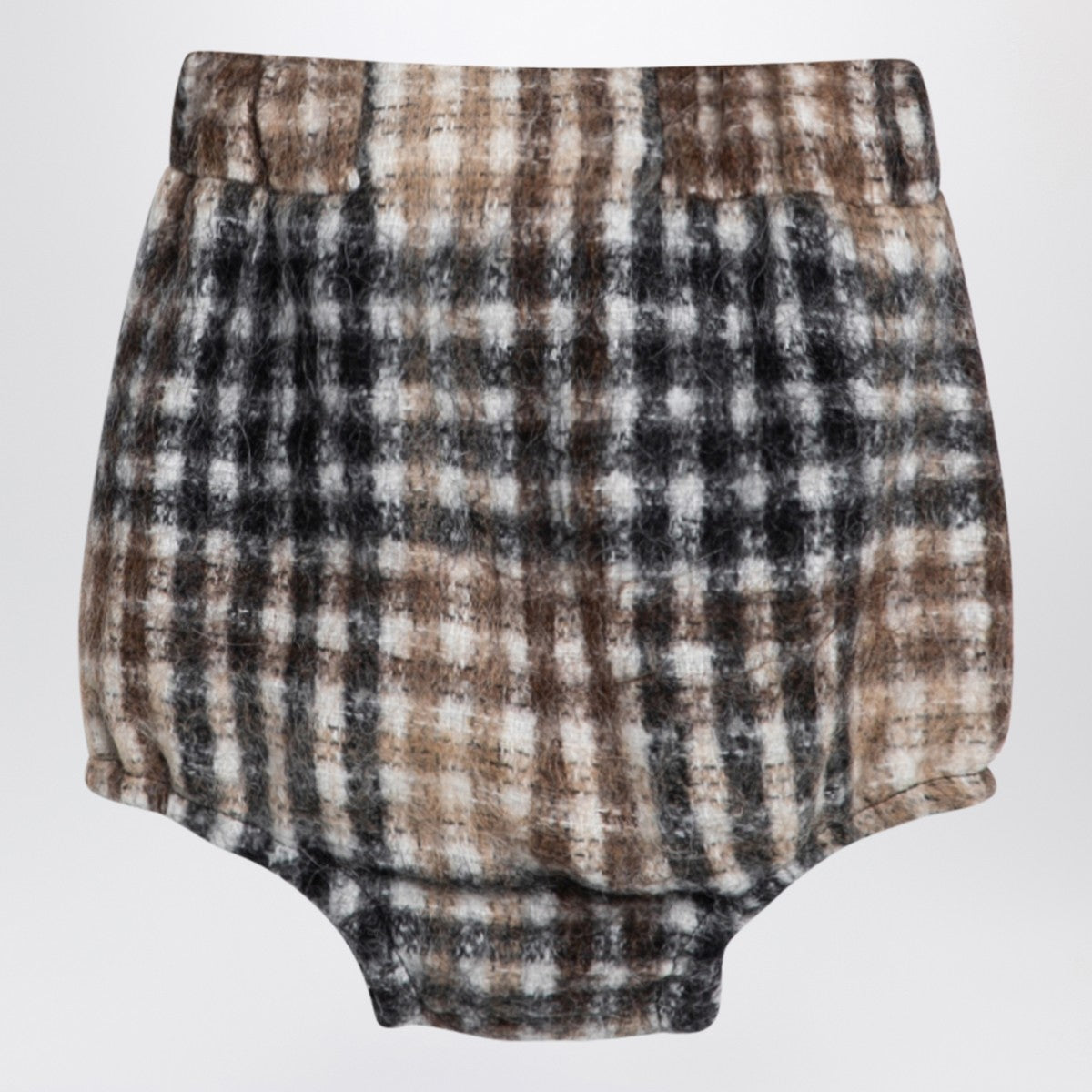 Wool-blend coulotte in hazelnut-coloured check pattern by Douuod with elasticated waist.