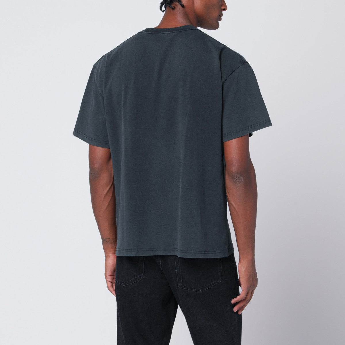 Brain Dead black cotton T-shirt, featuring logo print on the chest and back, short sleeves, and ribbed crew neck. Size and Fit - Model wears size L Model measurements: Height: 187 cm Chest: 102 cm Waist: 76 cm Hips: 92 cm