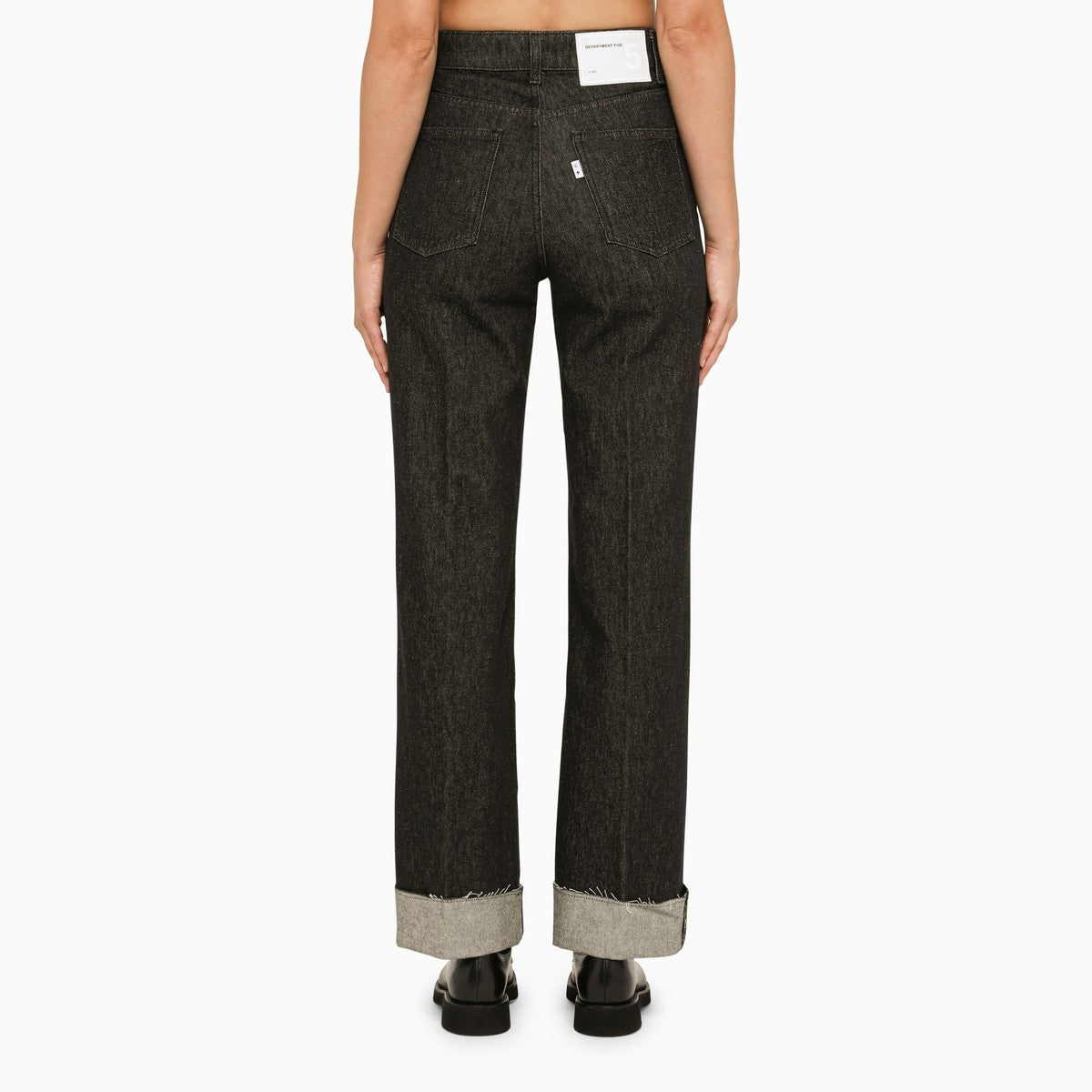 Department 5 jeans in black cotton denim, featuring a high waist, three front pockets, two back pockets and a logo patch on the back. Size and Fit - Model wears size 26 Model measurements: Height: 180 cm Chest: 84 cm Waist: 64 cm Hips: 91 cm